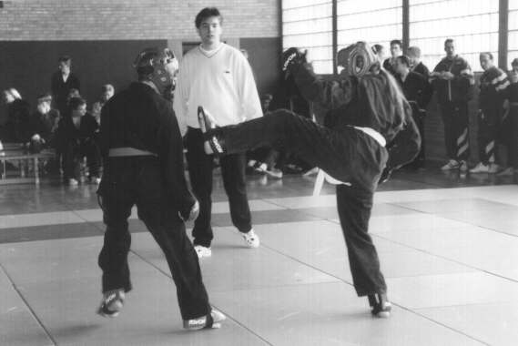 Mit 28 Teilnehmern ging es dann in der Clarholzer Turnhalle auf die Matte. Die Kämpfe waren deutlich ausgeglichener als im Vorjahr. Auch schien jeder Teilnehmer zu wissen was „Leichtkontakt“ bedeutet. Somit hatten die Pflichtlehrgänge ihre Wirkung getan und es kam auch nicht zu großartigen Verletzungen.