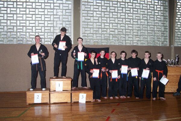 Die Kämpfer und Kämpferinnen vom Teutonia Dortmund Lanstrop konnten, wie schon einige male zuvor, den Mannschaftspokal für sich behaupten. Der zweite Platz ging absolut Punktgleich and die Budogemeinschaft Schwerte und an den Hap-Ki-Do Club Oelde.