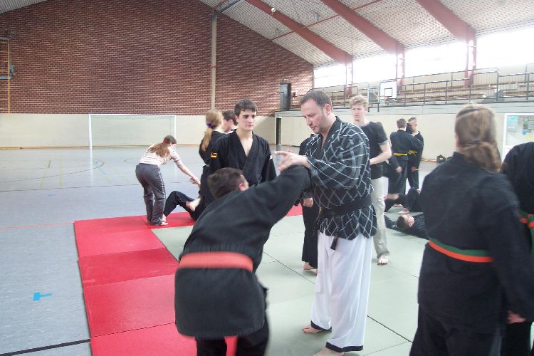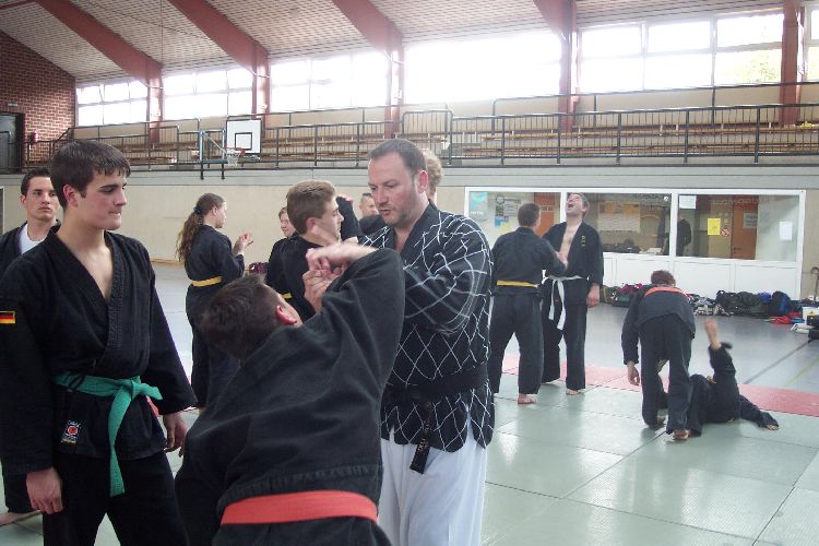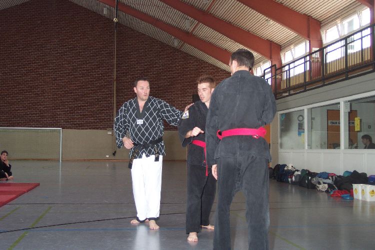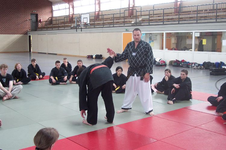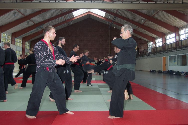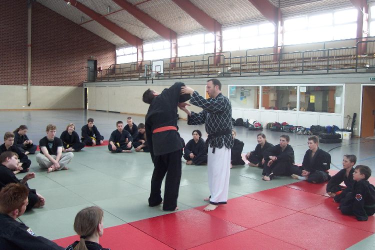 Meister Luc Barbieux aus Belgien ist vielen Verbandsmitgliedern schon seit längerem ein Begriff. Nach einigen privaten Besuchen konnte er nun für einen NWHV Lehrgang gewonnen werden. Stark eingeschränkt durch eine Knie-Verletzung konnte er nicht jede Technik selber demonstrieren, verstand es jedoch selbst den jüngsten und kleinsten Schüler als Lehrmeister darzustellen von dem jeder noch etwas lernen kann.