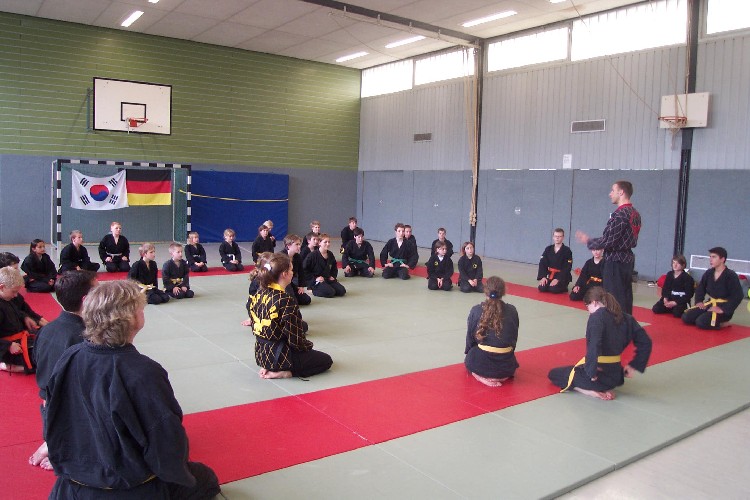 Unter dem Motto „Von der Selbstbehauptung zur freien Abwehr“ stand der diesjährige Übernachtungslehrgang der Hap-Ki-Do Jugend. Zwei Tage lang beschäftigten sich die Jugendlichen mit Vertrauensübungen, theoretischen Aspekten und der praktischen Anwendung ihrer Hap-Ki-Do Techniken in der freien Abwehr.