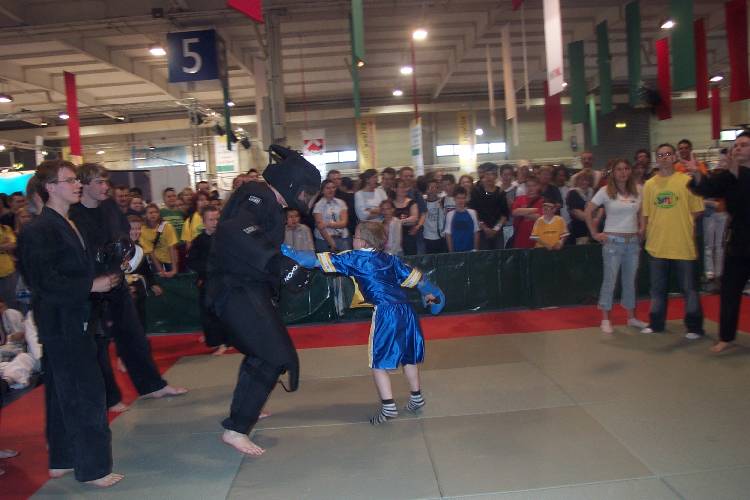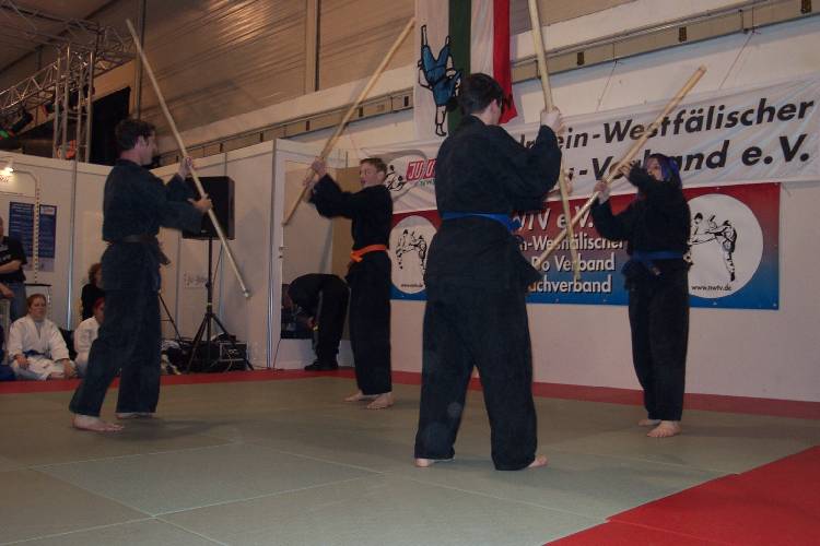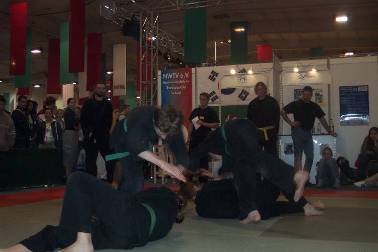 Insgesamt dreizehn mal zogen die NWHV Vereine mit ihrem Programm „Die Vielfalt des Hap Ki Do“ die Zuschauer in ihren Bann. Unter anderem zeigten die Kämpfer ihre Meisterschaftsformen, Fallschule, Handtechniken, Bruchtest und Waffenkämpfe. Am Donnerstag wurde die Mittmachaktion: Budosport zum Anfassen durch den NWHV betreut. Die Messebesucher hatten die Möglichkeit sich gegen einen gut gepolsterten Angreifer zu verteidigen.
