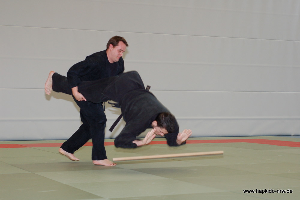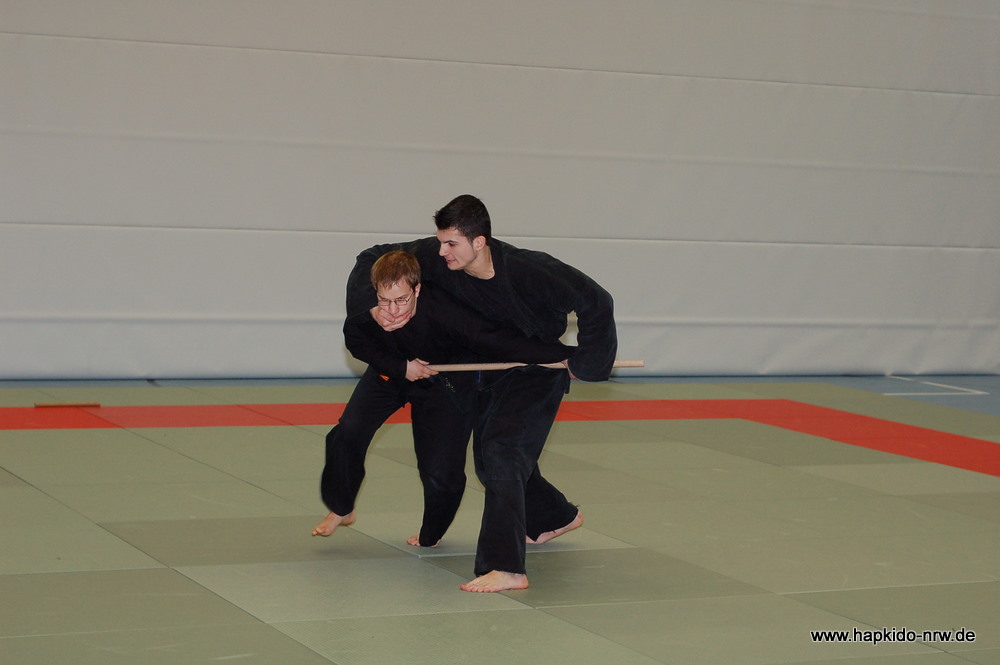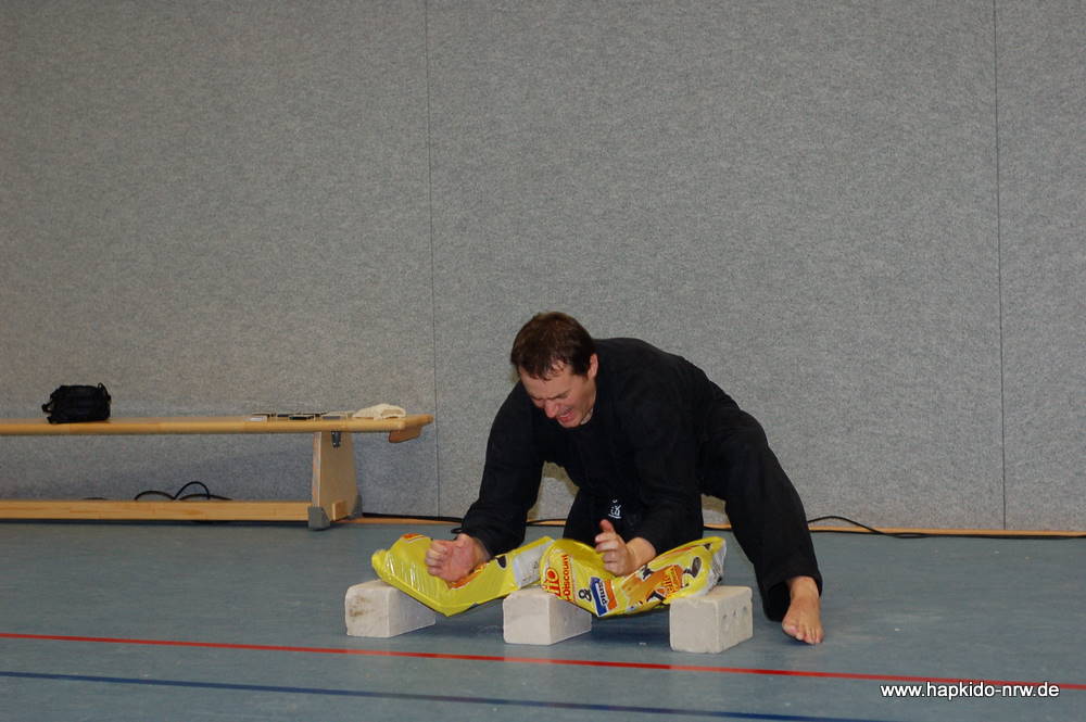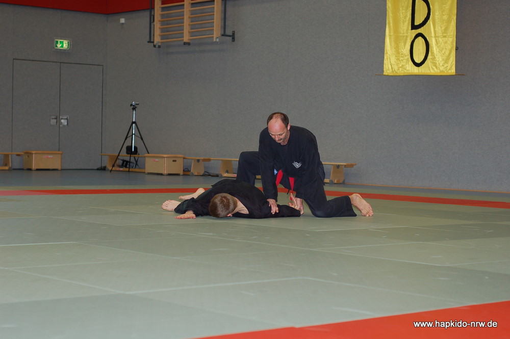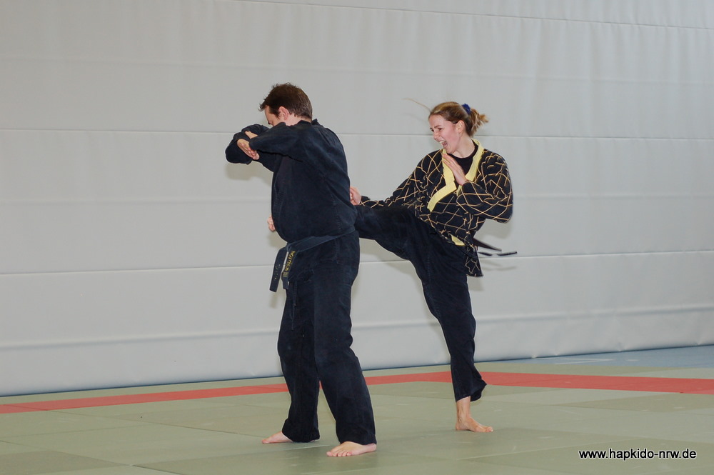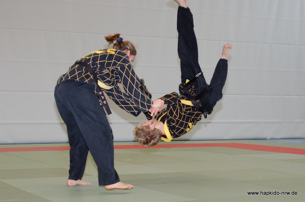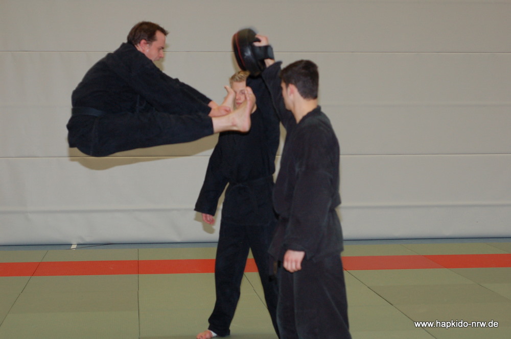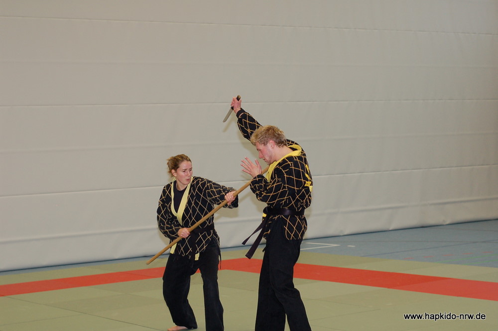 Im Dezember 2009 stellten sich 10 Hapkidoin den Dan-Prüfungskommissionen des NWHV, um die nächste Graduierungsstufe zu erreichen. Zu diesem Zweck hatte der Prüfungsbeauftragte für ein Wochenende nach Bönen eingeladen. Der ansässige Verein hatte seine neue Halle entsprechend vorbereitet und auch für ein der Veranstaltung angemessenes Ambiente gesorgt. Am Samstag stellten sich zunächst fünf Prüflinge aus den Vereinen Bönen, Clarholz und Schwerte der festgelegten Prüfungskommission F.-J. Wolf, 7. Dan IHC, J. Rath 5. Dan NWHV und D. Klos, um den ersten Dan zu erreichen. Am Sonntag folgten dann die Prüfungen zur Graduierung vom zweiten bis vierten Dan an. Dazu hatten sich ebenfalls fünf Kandidaten, hier aus den Vereinen Clarholz, Soest und Plettenberg angemeldet, um vor der Prüfungskommission, an diesem Tag zusammengesetzt mit F.-J. Wolf, 7. Dan IHC, G. Böse 5. Dan NWHV und D. Klos, ihre Leistungen unter Beweis zu stellen.