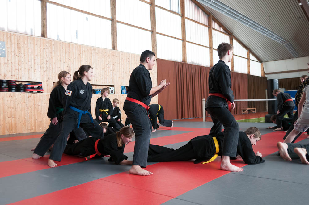 Manchmal kann ein Schritt in Richtung Angreifer auch die richtige Entscheidung sein. Nämlich dann, wenn man vor der maximalen Energieentfaltung des Angreifers diese gezielt aufnimmt, umleitet und aus dem Gleichgewicht bringt. Auch eine gewisse Schnelligkeit und Gelenkigkeit kann von Vorteil sein. Die ein oder andere Haarsträhne wehte von vorbeikickenden Füßen. Doch auch eine gut fokussierte offene Trefferfläche am Oberkörper, verbunden mit einer kontrollierten und sauberen Schlag- oder Fußtechnik kann Punkte bringen. Im Fokus dieses Lehrgangs lagen somit verschiedene Schwerpunkte, die sich jeder Teilnehmer individuell aneignen konnte. Mit zahlreichen Technikvariationen konnte der Referent die Teilnehmer auf die kommende Meisterschaft vorbereiten. Mit viel Engagement und Humor verstand es der Referent die Teilnehmer gezielt an ihre Grenzen zu bringen. Er nahm sich für jeden die nötige Zeit und achtete auf die richtige Durchführung der Techniken.