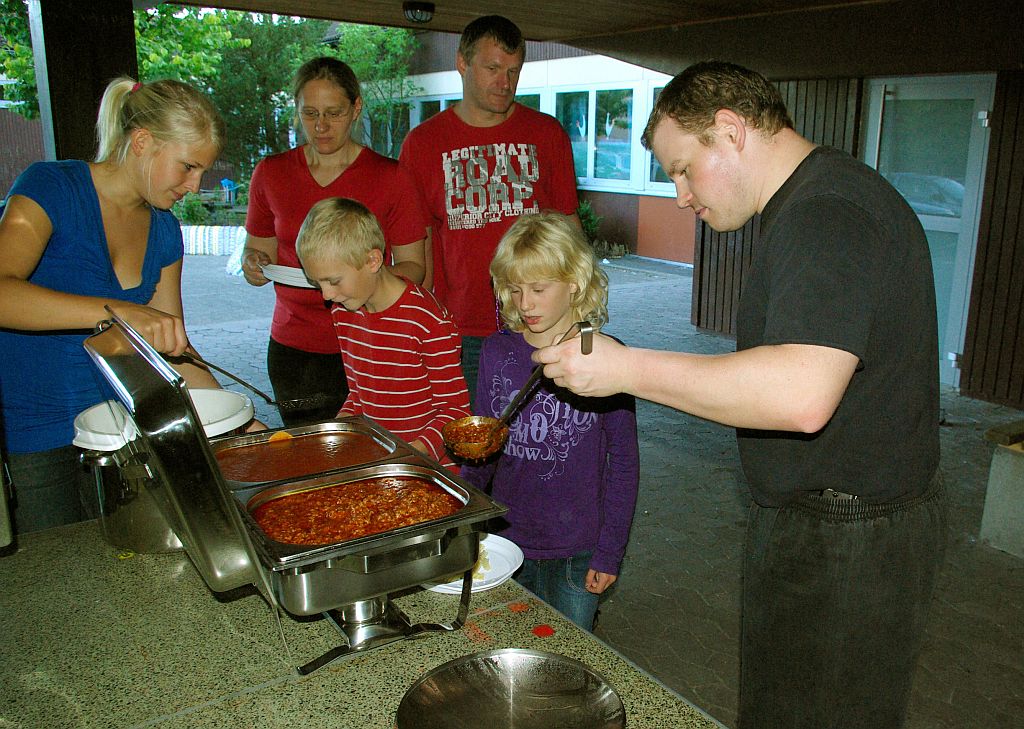 Für alle Aktiven, die bereits durch die lange Anfahrt und das vielfältige Programm am Samstagabend sichtlich erschöpft waren, hatten in der Zwischenzeit Sarah und Silke mit viel Liebe ein Abendessen vorbereitet. Große Töpfe voller Nudeln und kiloweise Bolognese-Sauce. Als besonderes Highlight ging es danach noch ins Plettenberger Erlebnisbad mit neuen Looping- und Freifallrutschen. Schon die Ankündigung mobilisierte bei allen neue Kräfte und alle Rutschen wurden dann gründlich erprobt, während einige Senioren sich im Solebad entspannten.