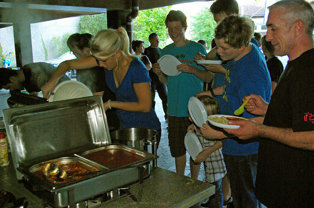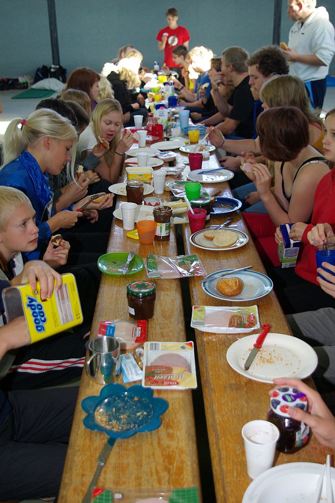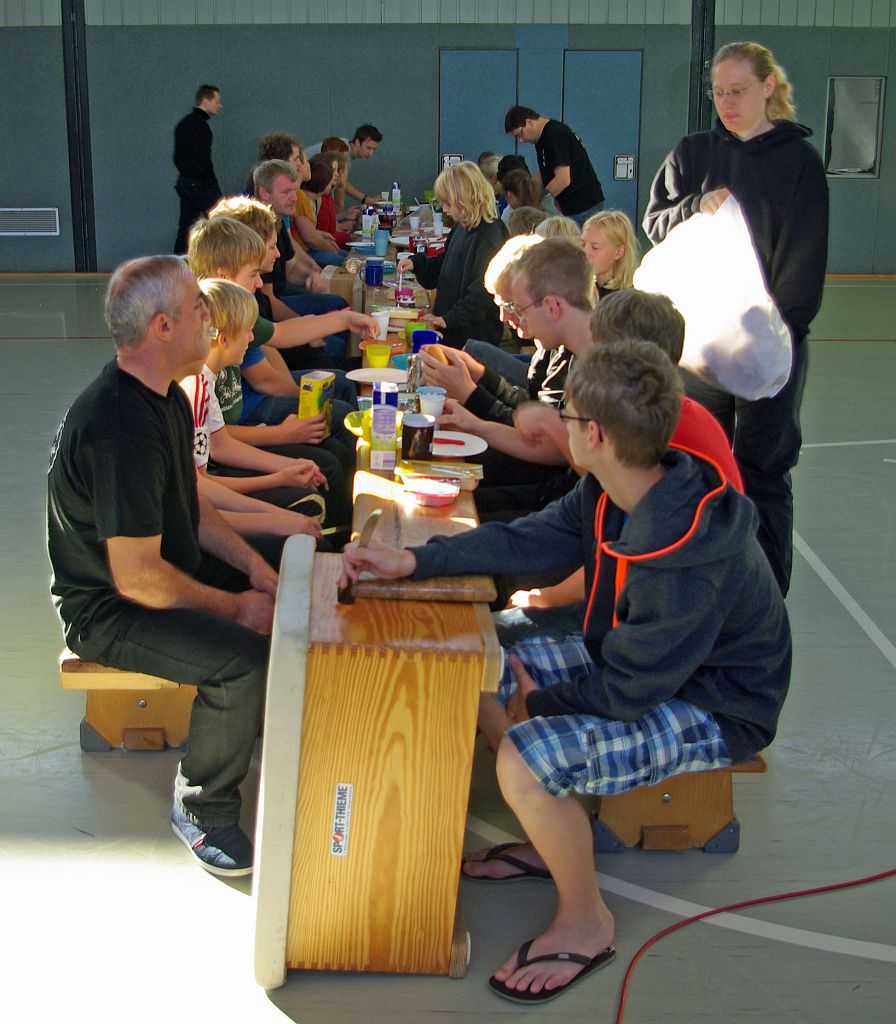 Da alle dieses Erlebnis bis Toresschluss ausnutzten, war es nicht verwunderlich, dass der Sonntagmorgen etwas schleppend anlief. Aber nach einem ausgiebigen Frühstück mit knackigen Brötchen, vitaminreichem O-Saft für die Kids und starkem Kaffee für die Senioren waren Schlafsäcke, Kuschelkissen und andere wichtige Übernachtungsuntensilien schnell wieder eingepackt und die Halle aufgeräumt.
