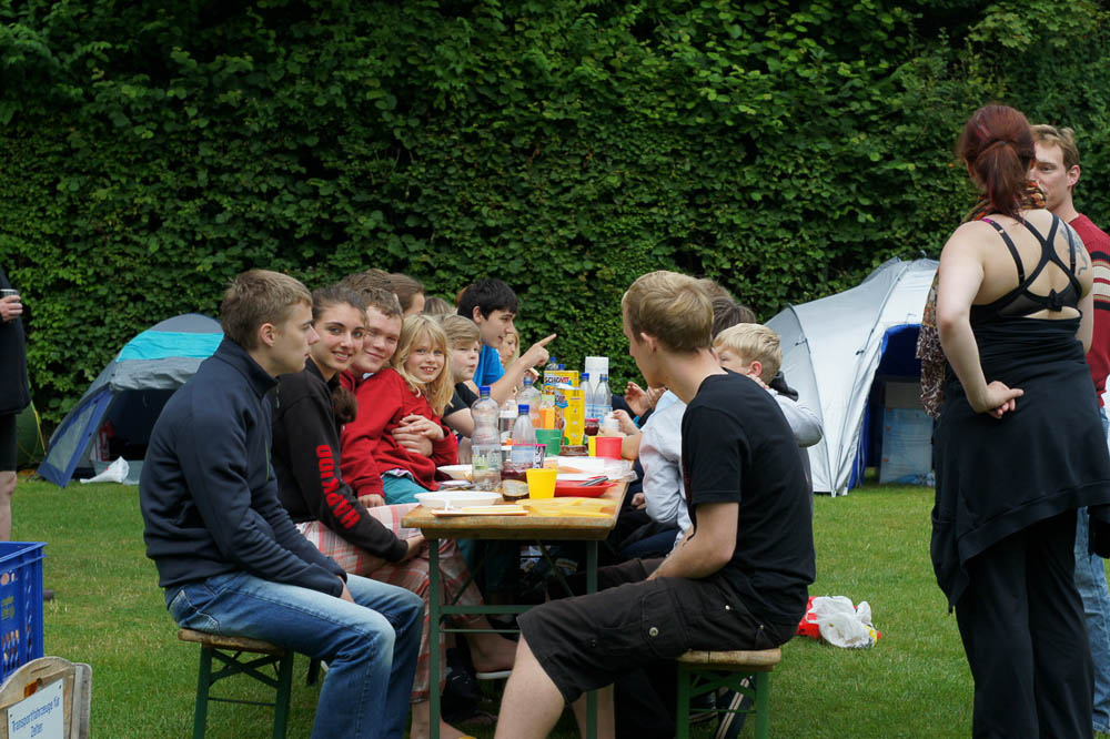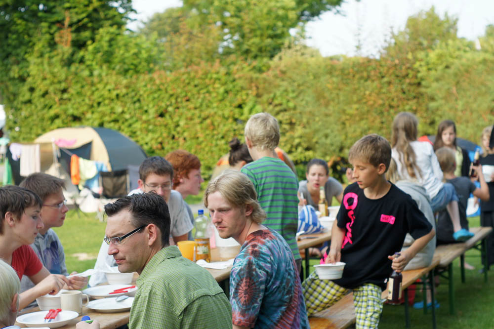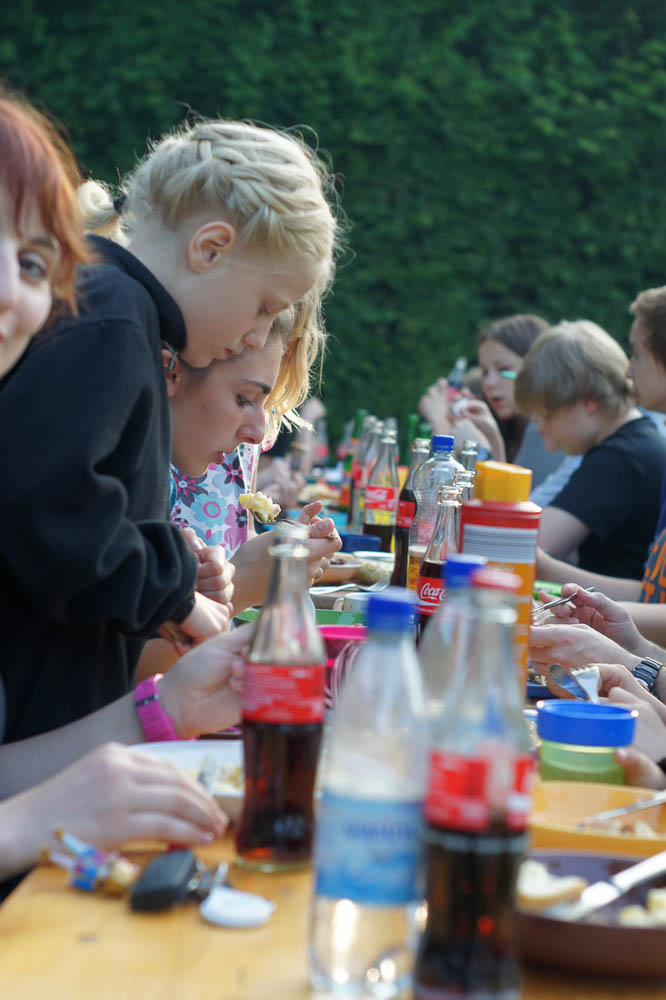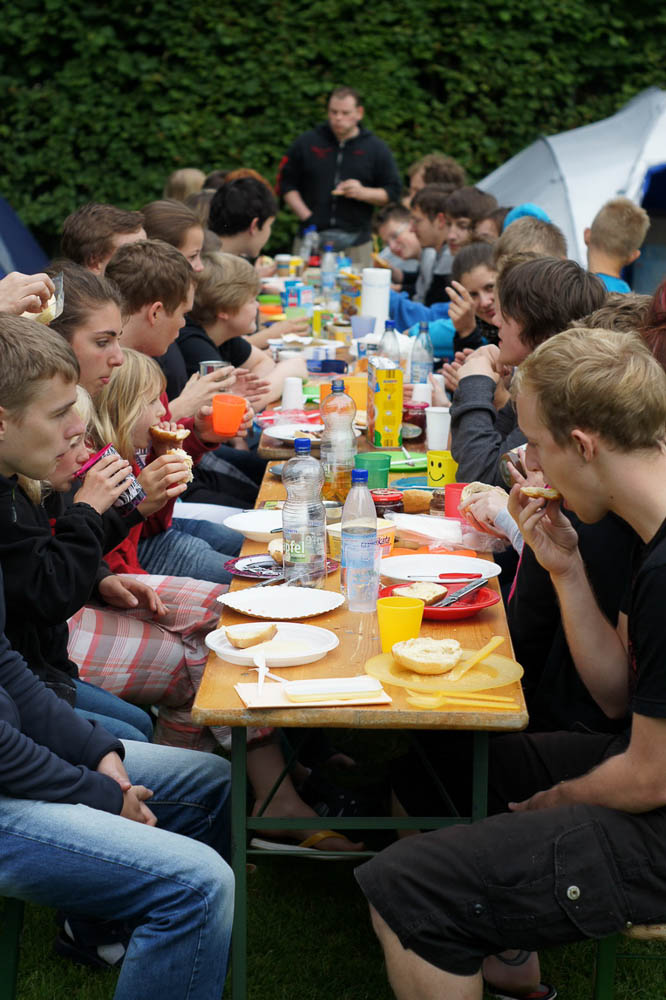 Nachdem wir in den letzten beiden Jahren noch in Großraumzelten untergebracht waren, beschloss die Verbandsjugend diesmal auf eigene Zelte zurückzugreifen, da der Aufbau leichter vonstatten gehen konnte. Schnell waren alle 18 Zelte in Eigenregie aufgebaut, so dass es zum ersten Kennenlernen zur außerhalb liegenden Wiese gehen konnte. Hier erwartete den Kids ein Mix aus Spiel, Spaß und Bewegung. Diese dienten der Annäherung der Teilnehmer untereinander und war zur Stärkung des Gemeinschaftsgefühls bestens geeignet. Die Zeit bis zum abendlichen gemeinsamen Grillen verflog sehr schnell und alle freuten sich auf das gemütliche Beisammensein. Neben dem Essen blieb noch genug Zeit, um sich untereinander mit allen auszutauschen. So fand auch währenddessen immer noch ein reges Treiben statt. Nach dem Essen ging es für die sportlich begeisterten Jugendlichen zum Beachfeld, auf dem wir ein kleines Fußballturnier mit wechselnden Mannschaften durchführten.