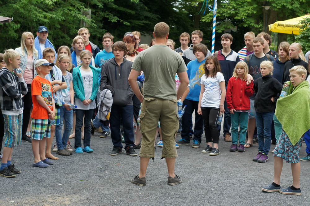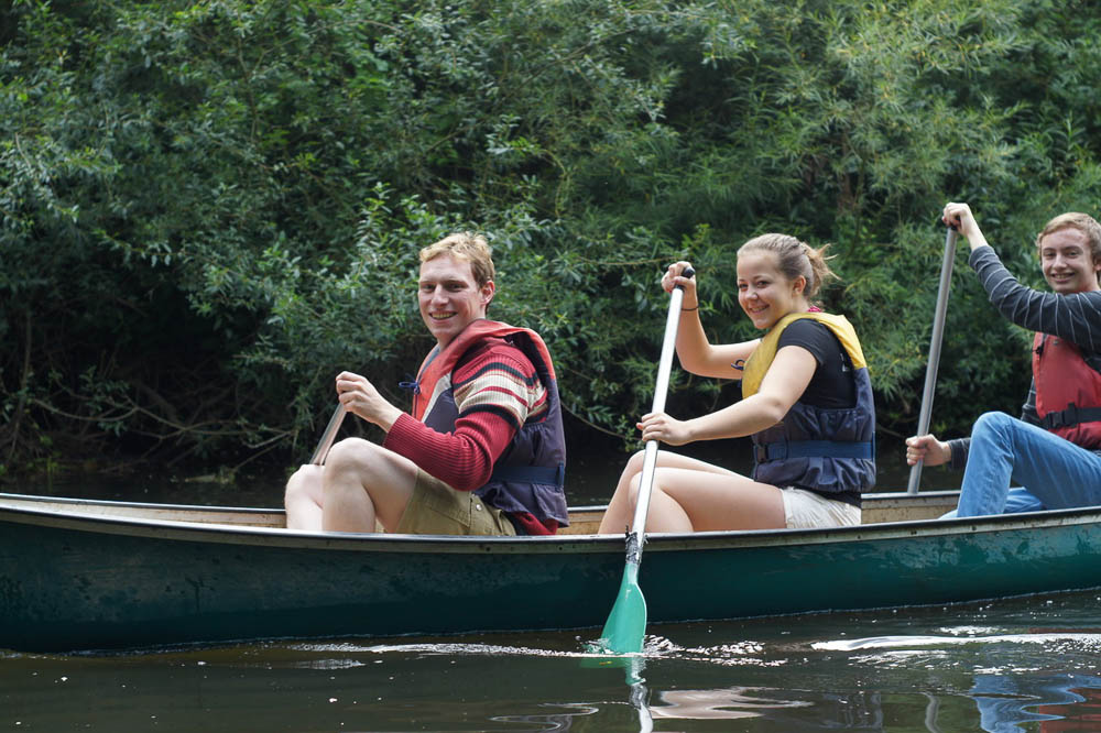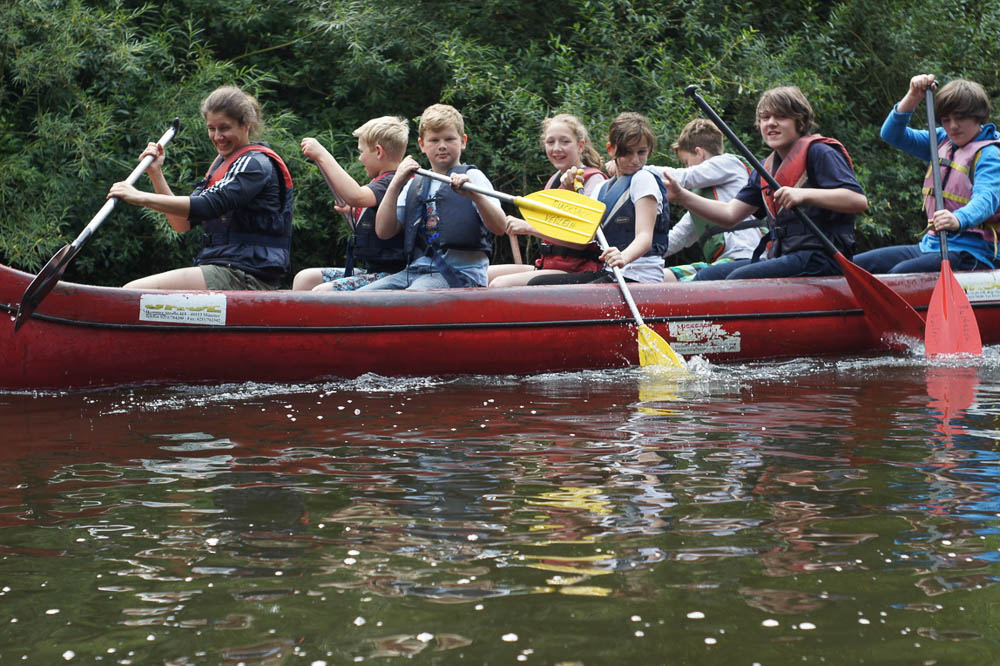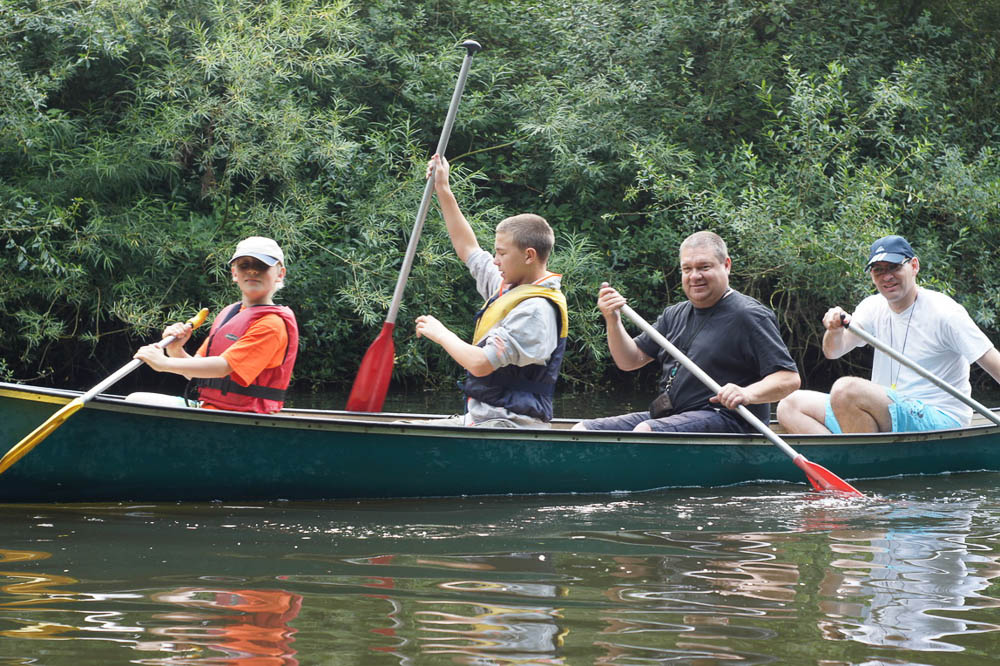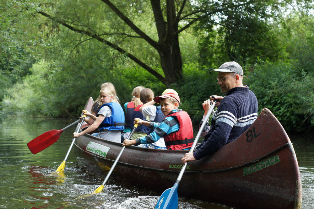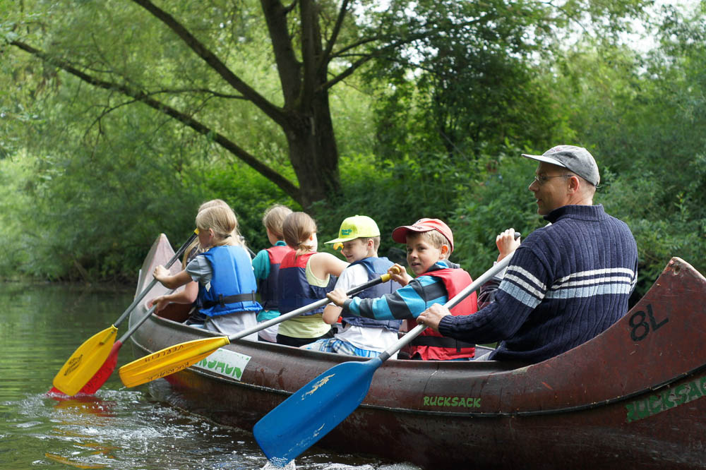 In der Früh wurden wir von der Sonne, die sich im morgendlichen Tau auf der Grasnarbe spiegelte, geweckt - ein herrlicher Tagesbeginn. Bei einem gemeinsamen Frühstück und frischen Brötchen stärkten wir uns. An diesem Tag machte die Gruppe einen Ausflug zur Pleister Mühle, um dort die Kanus zu Wasser zu lassen. Dort angekommen wurden wir sehr herzlich von den Mitarbeitern des Teams Rucksack empfangen. Nach einer kurzen Einweisung und Ausstattung mit Schwimmwesten und Paddel wurden wir in die freie Natur losgelassen. In den uns zur Verfügung gestellten 3er, 4er und 10er Kanus konnte jeder nach Belieben paddeln und die schöne Landschaft genießen, die geprägt war von vielen Gartenhäuschen, pompösen Anwesen mit diversen Steganlagen, sowie vielen Anglern, die an diesem Tag, aufgrund unseren Schlachtrufen, wohl wenig gefangen haben. Einige von ihnen waren so aktiv, dass sie es bis zum Wehr schafften, dann aber wieder umdrehen mussten, da die Ablegestelle auch unsere Anlegestelle war. Hatte man das im Eifer des Gefechts den Vorausfahrenden vergessen zu sagen, waren hinterher doch alle wohlauf und konnten stolz sagen, dass sie es am Weitesten von allen geschafft hatten.