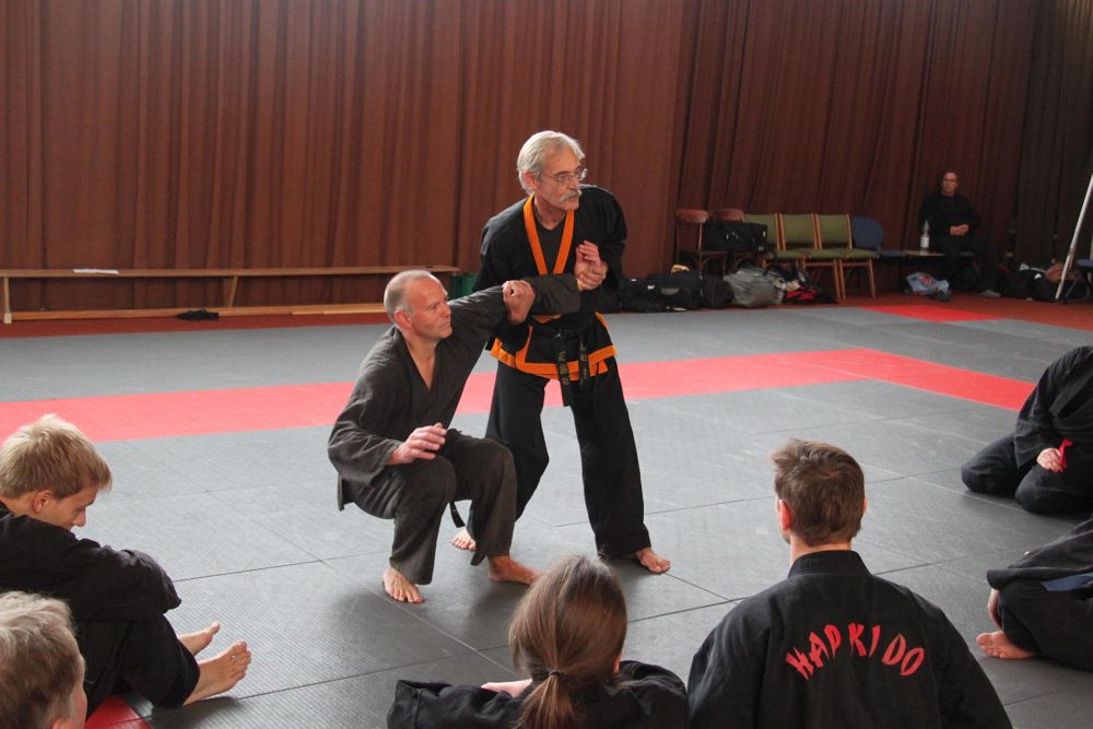 Nach den Sommerferien begann die Lehrgangsreihe des NWHV traditionell mit dem gemeinsamen Lehrgang der Jugend und der Erwachsenen. Die Organisatoren (unsere Jugendleitung und der Lehrwart) hatten gemeinsam ein interessantes Programmpaket geschnürt und konnten dafür ein hochrangiges Referententeam aus unserem Verband gewinnen. So hatten sich über siebzig Hapkidoin aller Altersklassen für ein Wochenende im wunderschönen Dojang der Budogemeinschaft Schwerte versammelt. Zu Beginn wurden diese von Tobias in drei Gruppen, Kinder, Jugendliche und Erwachsene eingeteilt und verteilten sich in der großen geräumigen Halle.