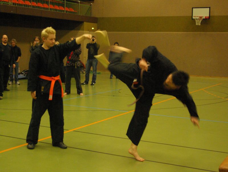 Der Paderborner Hapkidoclub hatte zu einem interessanten Techniklehrgang eingeladen. Themen hierbei waren die Prüfungstechniken für den grünen und blauen Gürtel im Kuk Sul Won Hapkido. In einer Lehrgangsserie sollten im ersten Lehrgang die Techniken des grünen und blauen Gürtels und im Folgenden die des braunen und roten Gürtels behandelt werden. Als Referenten standen Detlef Klos und Jens Thiel vom Ausrichter zur Verfügung. 30 Teilnehmer aus NRW und Niedersachsen reisten deshalb in die schöne Paderstadt, um ihre Kenntnisse zu vertiefen.