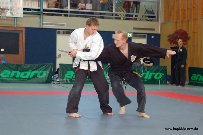 Der Deutsche Hapkido Bund hatte seine im Zweijahres-Rhythmus stattfindenden deutschen Meisterschaften für 2008 nach NRW vergeben. Die Budogemeinschaft Schwerte unter dem 1. Vorsitzenden Guido Böse hatte zu diesem Anlass ein Turnier organisiert, dem es an Perfektion nicht fehlen ließ. Wettkampfvoraussetzungen, Ambiente und Zeitplan stimmten auf dem Punkt. Die Halle war mit zwei Matten gut ausgestattet, für das leibliche Wohl sorgte ein Kiosk mit Speisen von Brötchen, Bockwurst, Reisgericht bis zu einem umfangreichen Kuchenbuffet, ein Souvenirstand und ein Bonsaiverkauf rundeten das Angebot ab. Für die 106 Starter bot sich somit auch eine vom Ablauf her durchorganisierte Veranstaltung. Der heimische, mitgliederstärkste Verband stellte dabei das größte Teilnehmerfeld, gefolgt von Hessen und Sachsen-Anhalt.